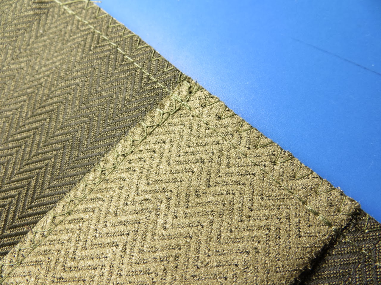 Iron your interfacing pieces to the WRONG side of your back pieces (along the 19.5″ side). Do a wide zig-zag stitch (or serge) over the raw edge of your fabric/fusible interfacing.. this keeps the edge from fraying.