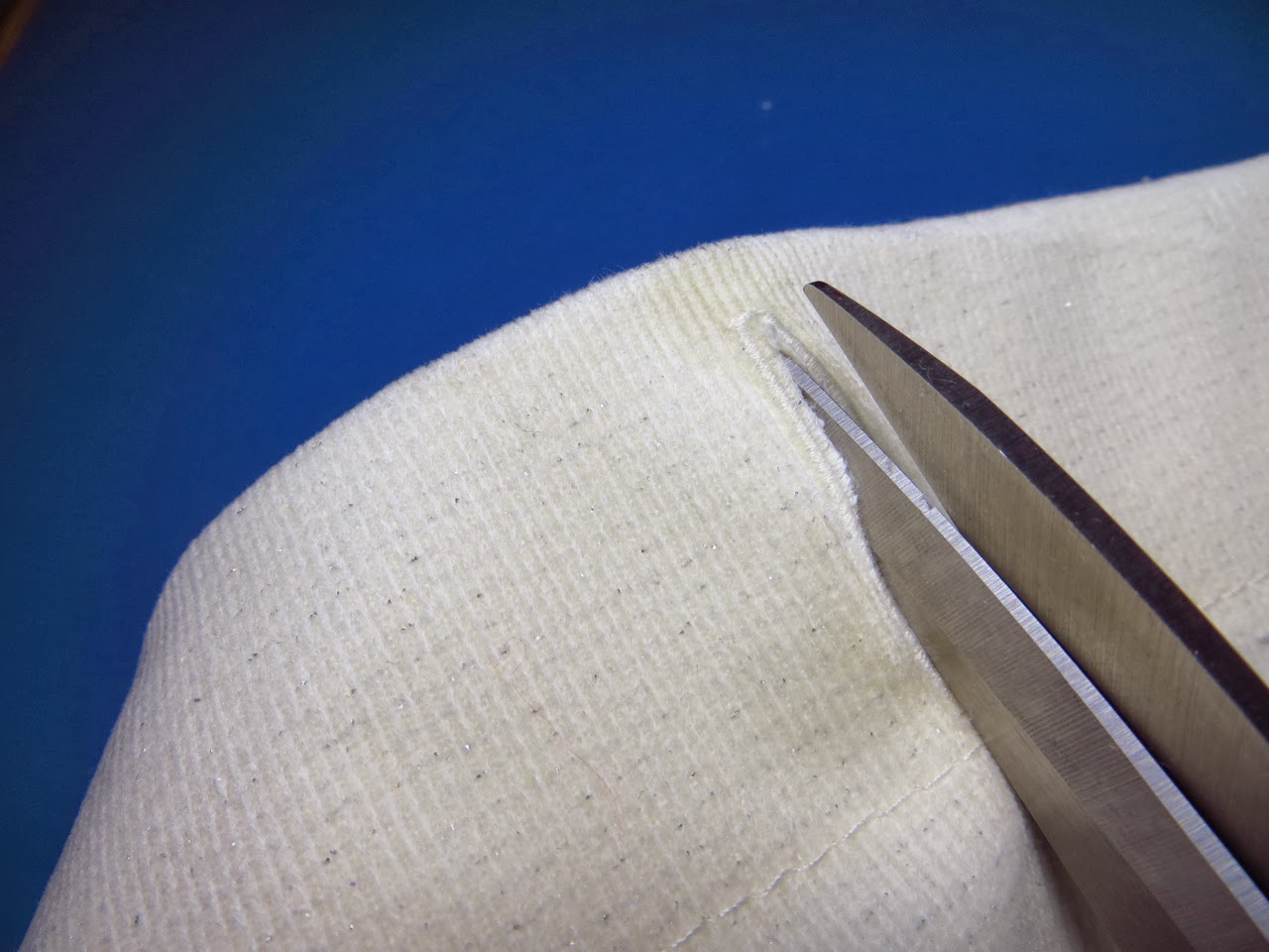 Trim your seams to 1/4″ and round your corners about 1/8″ away from stitches.