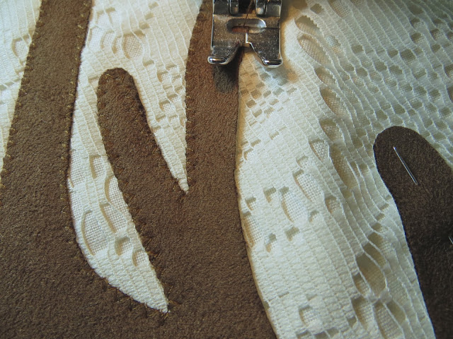 Print and cut out deer pattern (link above in materials section). If you are using lace as a decorative layer over the top of your regular fabric like I did, you will cut out your lace with the same measurements as your regular fabric and simply sew your pieces together in each step as if they were one, having your lace directly over the right-side of your regular fabric.