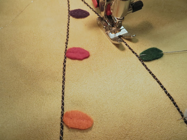 Sew your leaves down with your machine just past the halfway point, making sure to backstitch on both ends.
