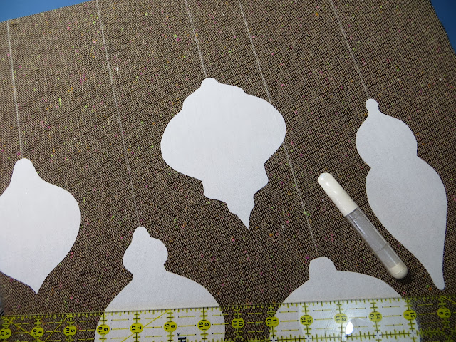 Next making lines with your chalk and a ruler straight up from the top of your ornaments.