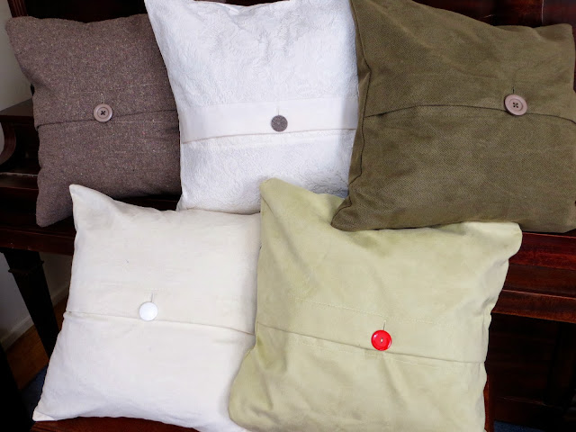 With your decorated fabric square right-side up, place your back side (with the buttonhole) with right-side down over your square and corners matching. Next place your other back side on with right-side down as well with corners matching. Pin everything in place.