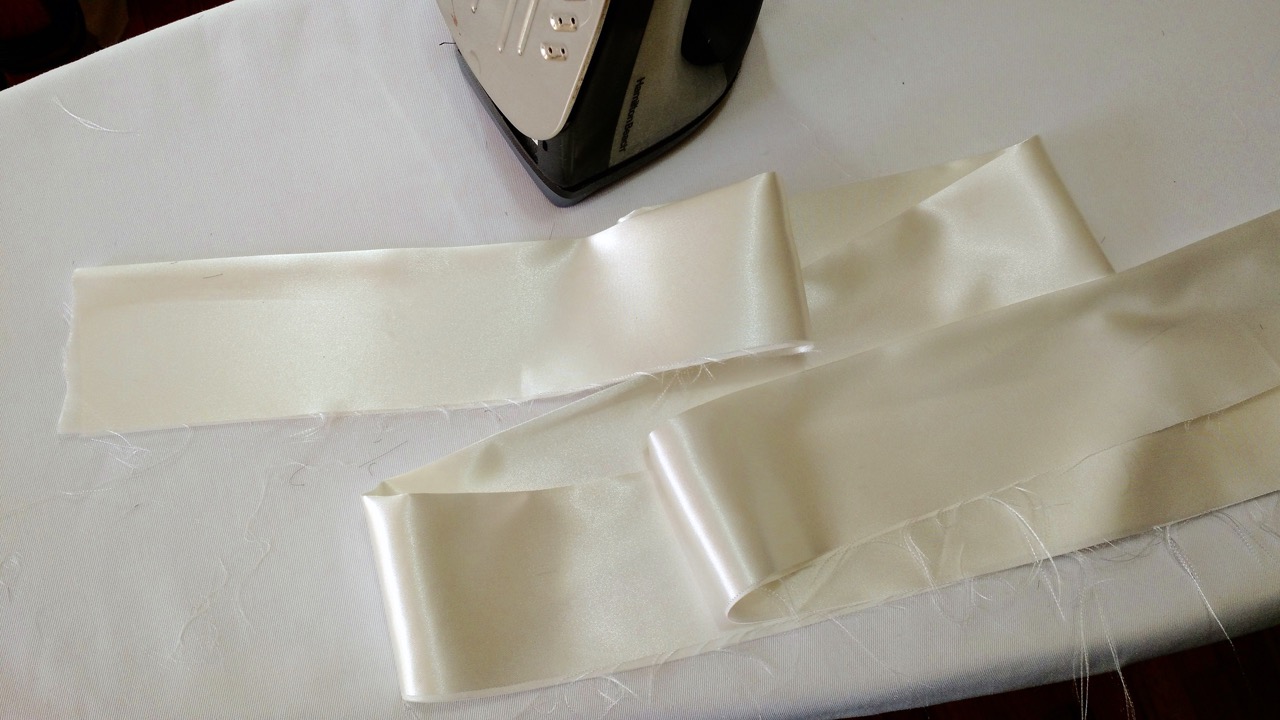 Cut your satin fabric into FOUR 6″ x 54″ strips.