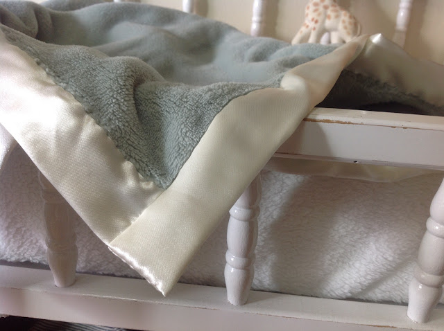 You know what’s awesome? I got a large king-sized plush blanket from Costco for $15 and cut it into 6 pieces. That’s 6 soft baby blankets for $2.50/each plus about $2.50/each worth of satin material = $5/each!