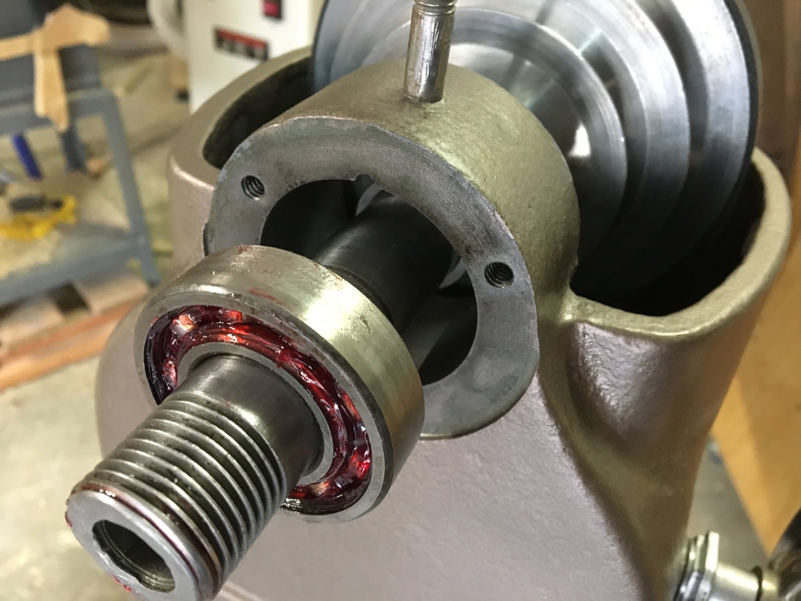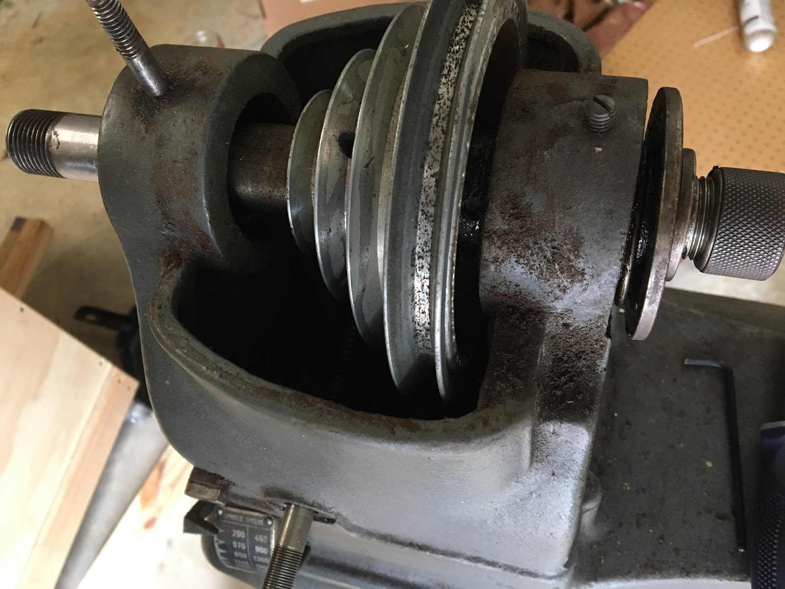 Assembling the headstock was a breeze compared to taking it apart (thankfully). Remember to place your 2nd belt on the reeve’s drive before you do anything. Have your belt going over pulley as you put the spindle through.