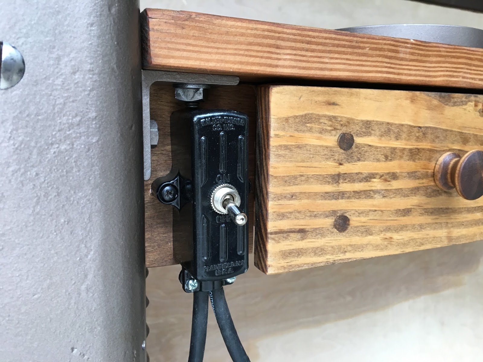 I screwed the switch next to the drawer so I wouldn’t have to bend over to operate it.