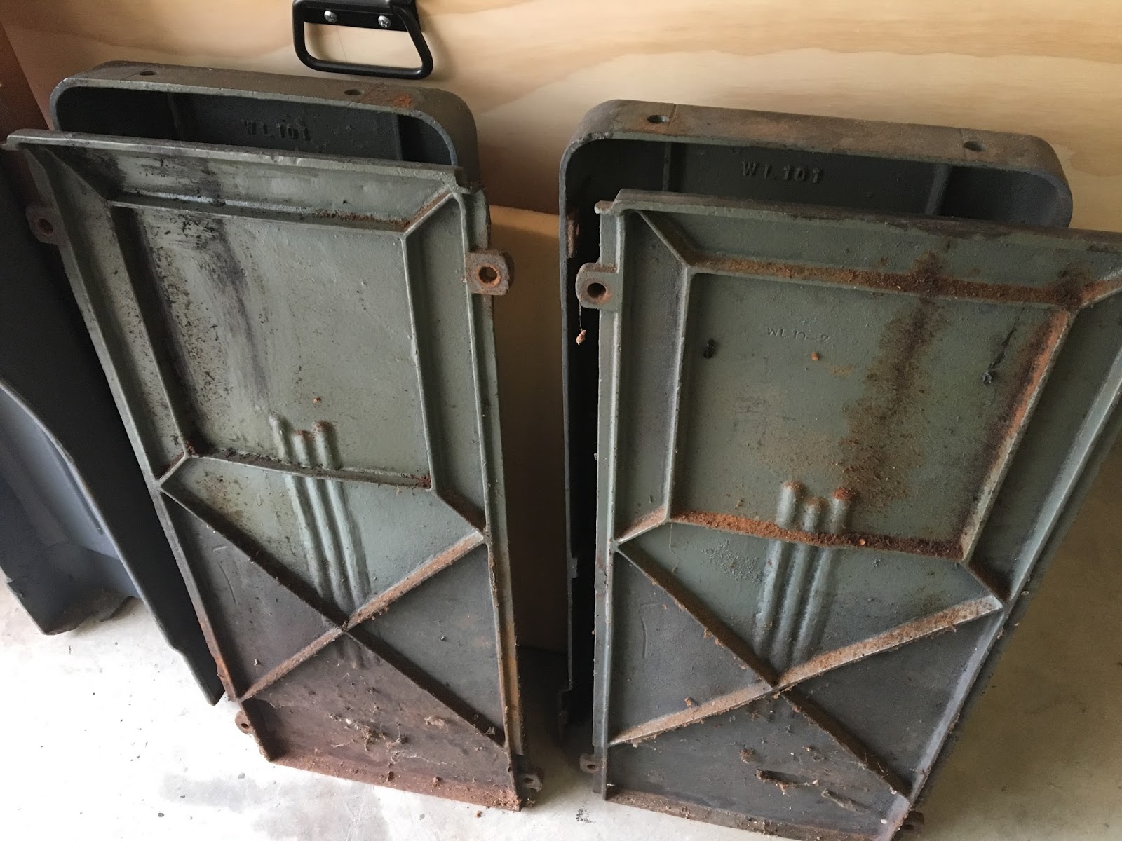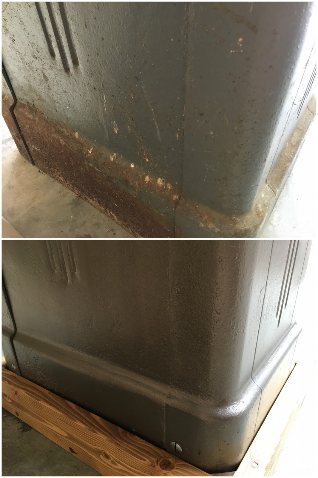 …used my grinder to grind rough spots away in the casting and remove the heavy rust along the back of the cabinet.