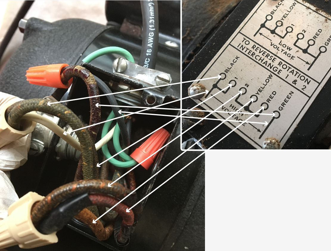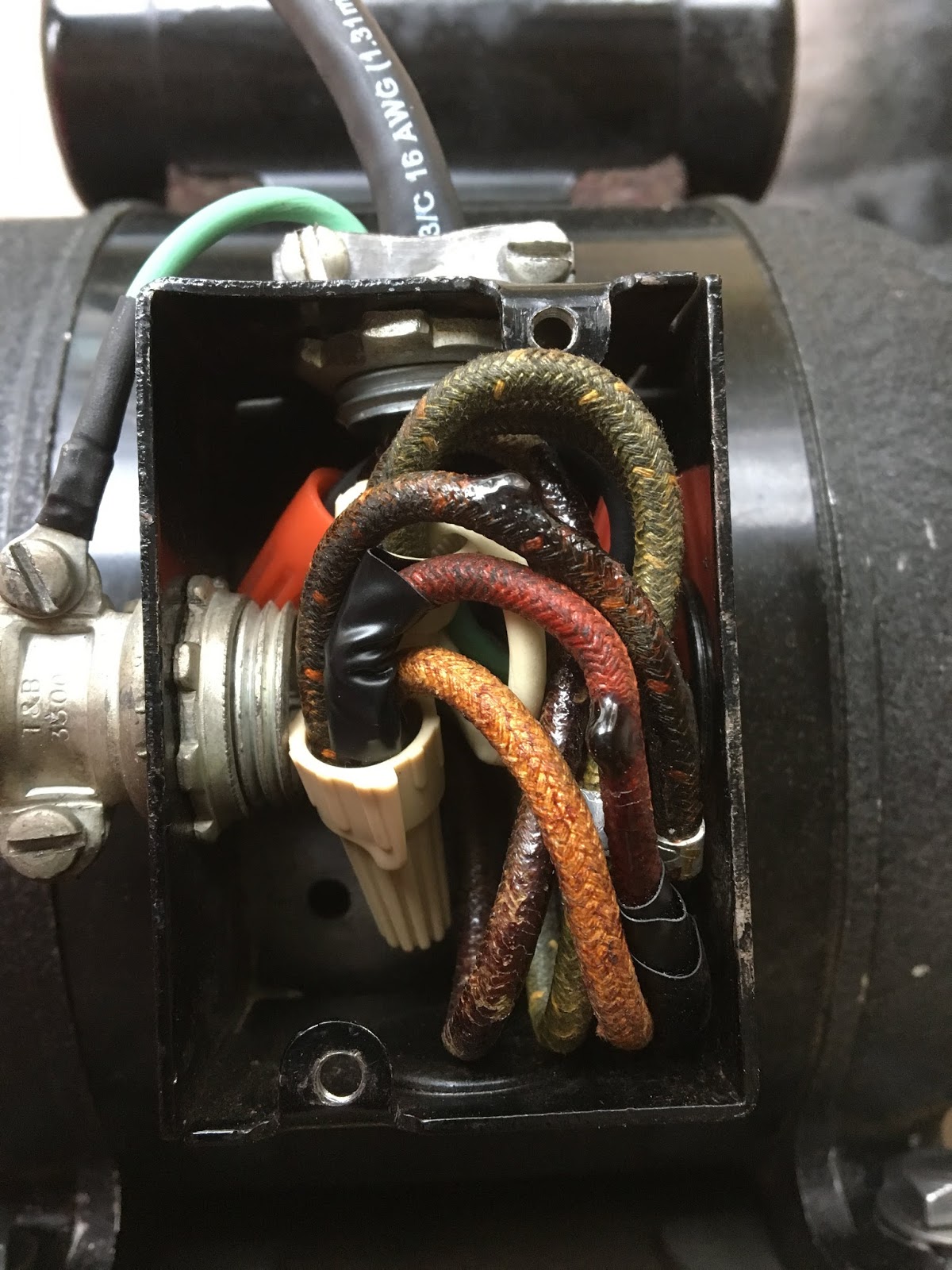 I wasn’t confident switching over to 220v by myself from the wiring guide off the motor. I took it to an Electrical Motor Repair Shop in Durham, NC. He showed me what wires to bundle together and where to attach the ‘switch’ and ‘plug’ wires inside the junction box.