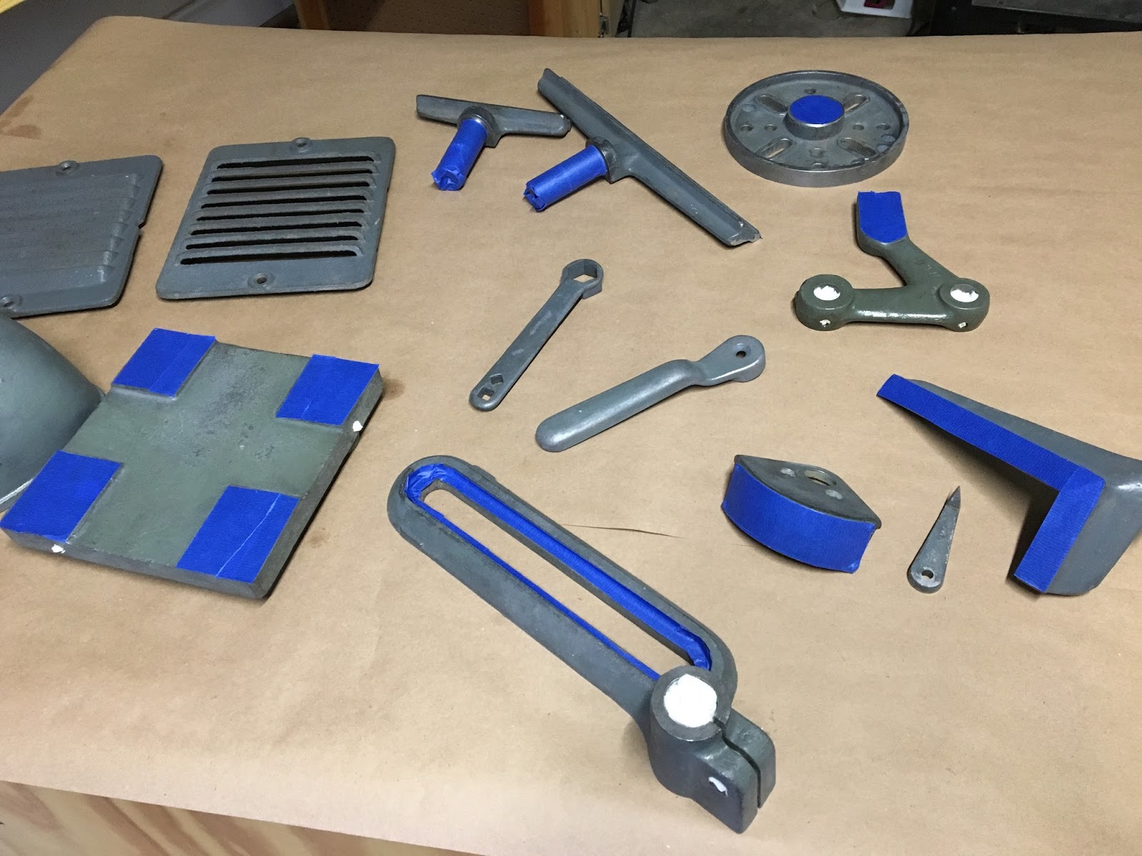 I used wire wheels, brushes and mineral spirits to prepare all the small pieces for paint.