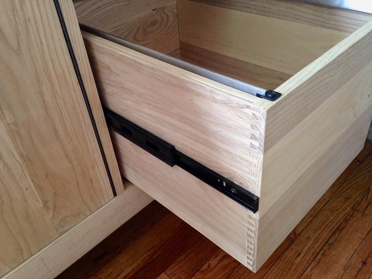 While at home I was able to put the drawer slides on, attach the drawers and screw on the file hanging hardware.