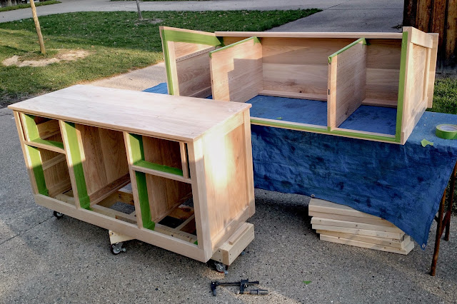 I had to wait a WHOLE rainy weekend before I could pull out my drawers and doors to stain and finish.