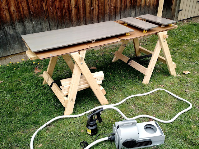 See my nifty sprayer? It’s so easy to clean, too! All I have to do is pull apart the nozzle area and clean everything with soap & water (since my finishes were water-based). I will get so much use out of this thing. Also, check out my sweet sawhorses (I think all my neighbors are jealous)! Something else I’ll used often!