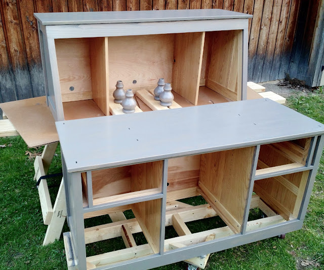 He recommended Ceramithane which I could buy at our local Andersen Paint Company. Before buying it I made sure to read reviews and to know exactly how to apply it and the process of doing so. I was so glad to read I would be able to use a sprayer… but of course I didn’t have a sprayer and had never used one! More stress!! Anyways, I ended up buying the Ceramithane with a discount for about $83 and bought an HVLP sprayer from Harbor Freight. I got the sprayer for under $100 with a 20% discount, and although it’s not a “professional” sprayer it saved me so much time and headache! It took about 15 minutes to spray my large top and bottom pieces, inside and out. Hardly any runs I had to fix and if I did, I brushed them off and the Ceramithane leveled out beautifully. Next, I sanded lightly with a 500 grit paper and did another coat.