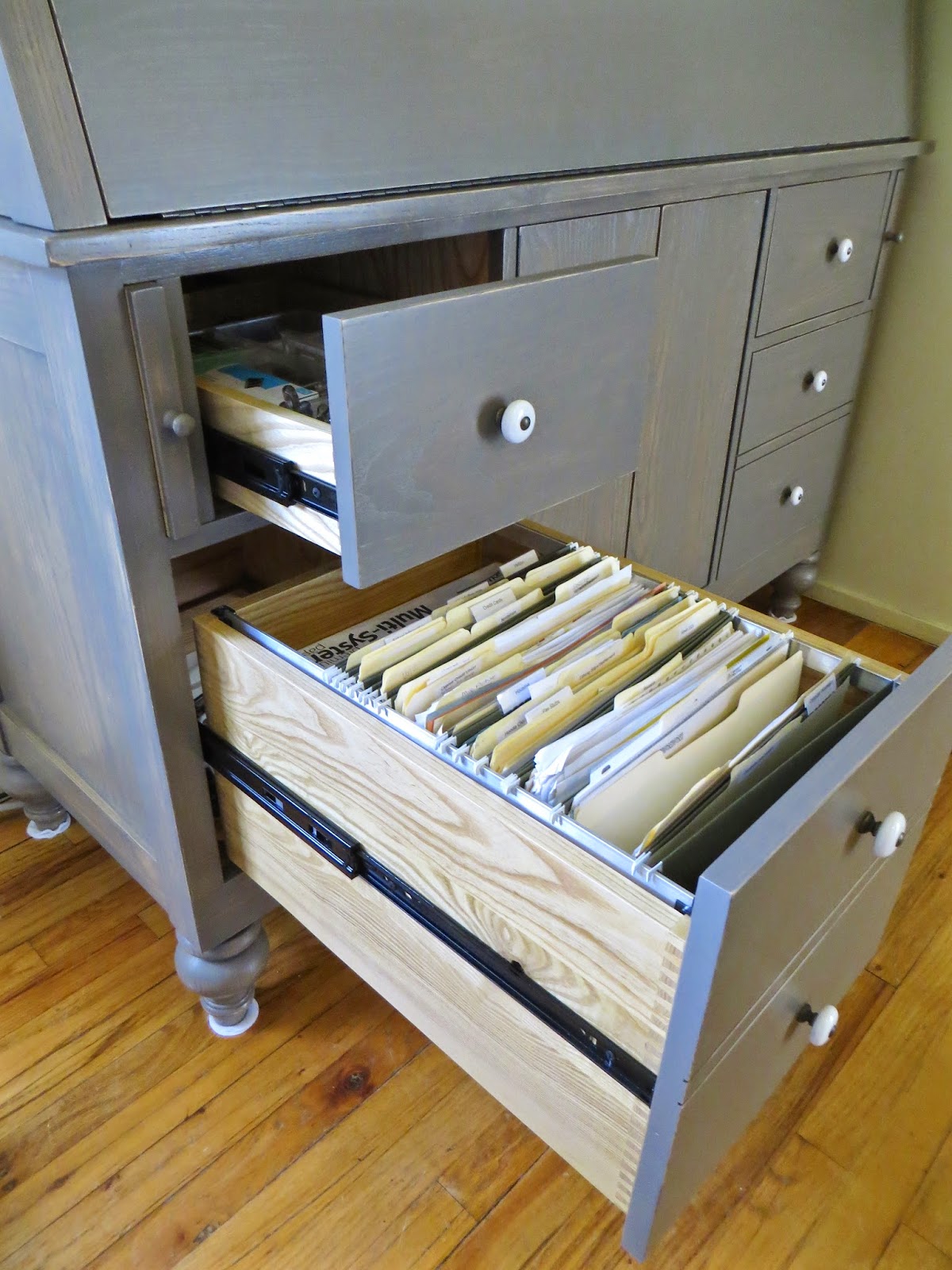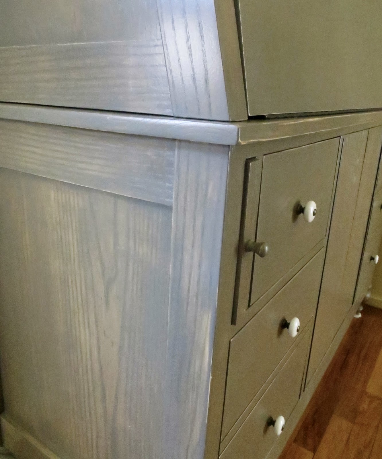 I had to wait a WHOLE rainy weekend before I could pull out my drawers and doors to stain and finish.
